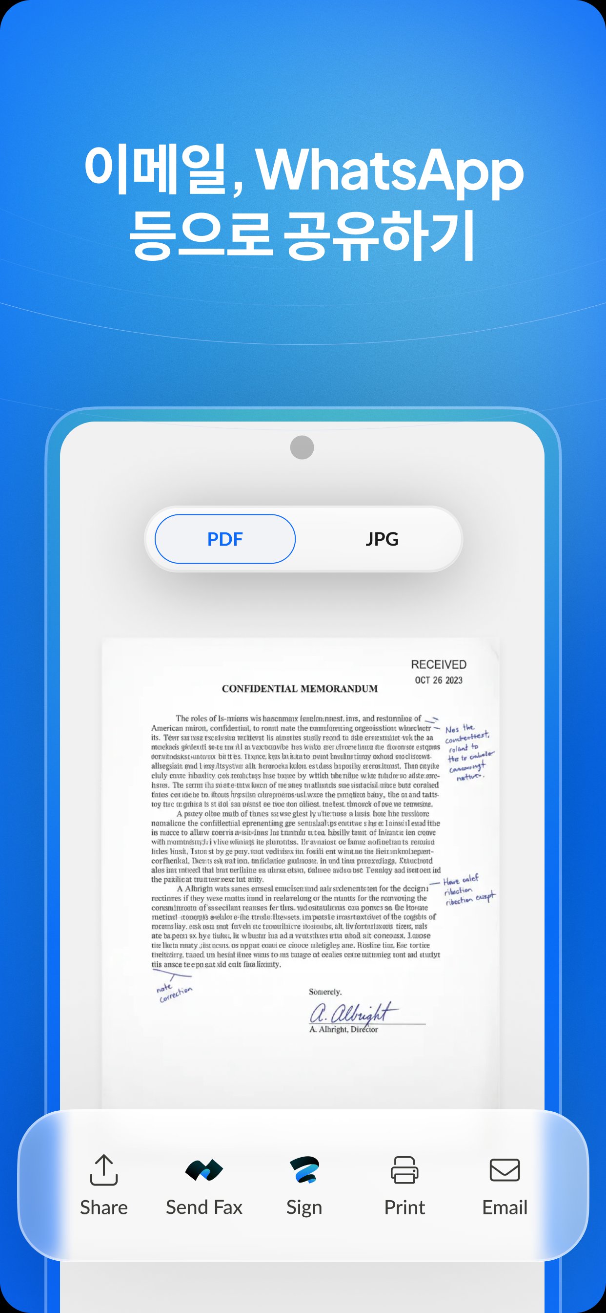 Sign.Plus를 통해 디지털 또는 대면 전자 서명을 즉시 요청하거나, Fax.Plus를 사용해 앱에서 바로 팩스를 전송할 수 있습니다. 업무에 필요한 엔드투엔드 문서 솔루션을 제공합니다.