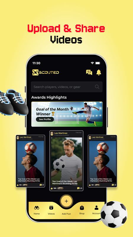 남학생과 여학생 모두가 글로벌 축구 커뮤니티와 소통할 수 있는 활기찬 플랫폼 역할을 하며 축구 여정을 공유하고 소중히 여길 수 있는 공간을 제공합니다. 기술을 선보이거나, 프로필을 작성하거나, 추억을 간직하는 등 SCOUTED는 기회의 문을 열어줍니다. 🌟