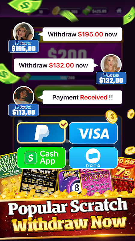 매끈하고 화려한 게임 인터페이스와 다양한 스크래치 카드가 여러분을 기다립니다! 🎨 "골드 러시"와 "성 패트릭 데이"와 같은 테마 카드는 생생한 그래픽과 함께 재미있고 몰입감 넘치는 경험을 선사합니다. 🌟