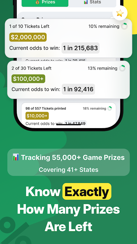 실시간 스크래치 복권 당첨 확률 추적. 최고의 복권 티켓을 찾아보세요.