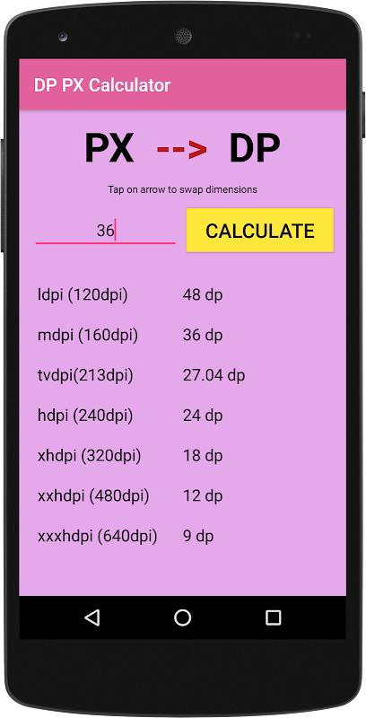 화면 해상도 정보, 죽은 픽셀 테스트, PX에 DP 변환