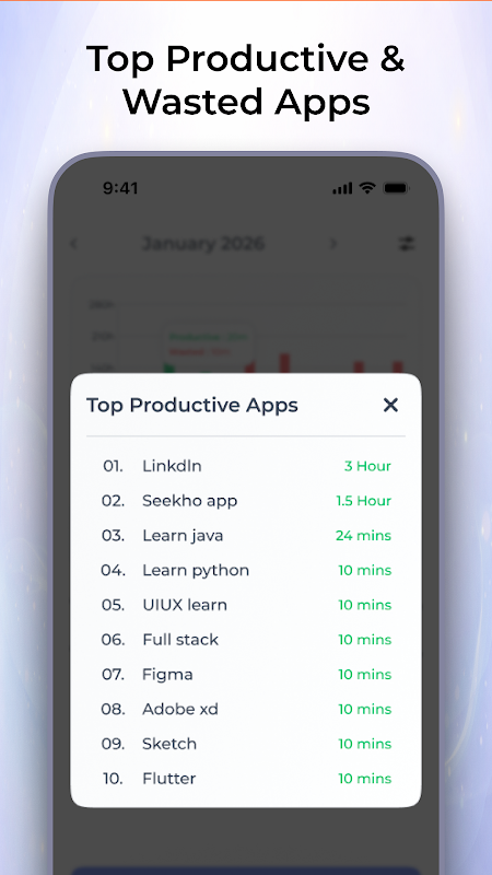 TimeLeak은 화면 사용 시간, 잠금 해제 횟수, 앱 사용 패턴을 추적하고 낭비되는 시간을 줄여줍니다. 시간을 어디에 쓰는지 파악하고 더욱 효율적인 생산성 습관을 만들어 보세요.