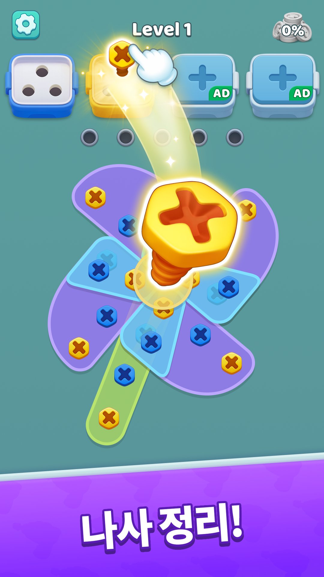 재미있고 두뇌를 자극하는 나사 풀기 게임.