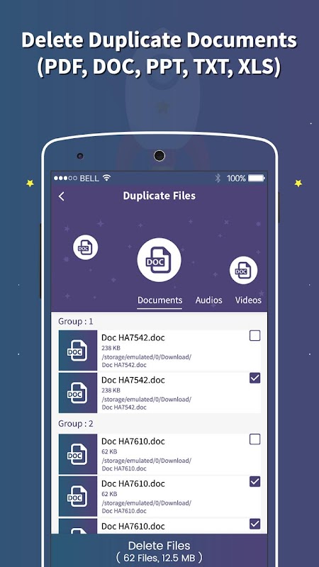 - Duplicate Files Remover identifies and removes replicated videos or files from your Internal or External Storage