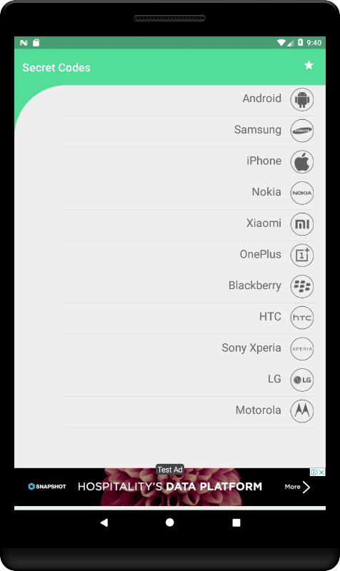 이 응용 프로그램은 장치의 다양한 기능에 대한 비밀 코드의 목록을 제공합니다.
