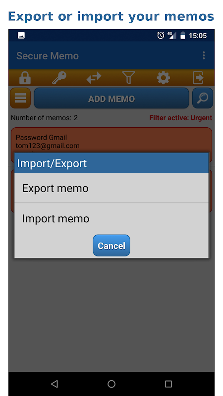 보안 메모 데이터 컨테이너입니다 이벤트의 AES 암호화 및 암호 보호 을 함께 최고 수준의 보안. 이 간단하고 빠른 응용 프로그램과 사용자의 개인 정보를 보호합니다. 비밀에게 메모를 유지합니다.