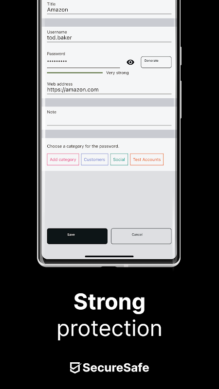 • 암호 관리자: SecureSafe 무료 버전을 사용하면 최대 10개의 고유한 암호를 저장할 수 있습니다. 강력한 암호를 생성하는 데 도움이 되는 통합 암호 생성기를 사용하기만 하면 됩니다.