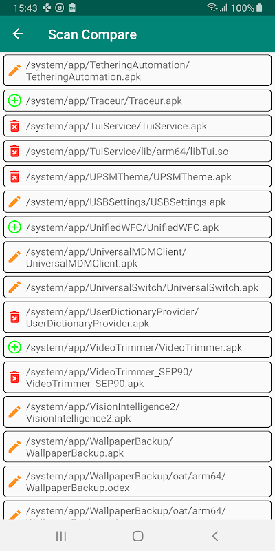 This application allows you to detect any changes made to the file system. It uses a mechanism independent of the Android operating system: unlike other applications, this mechanism allows you to detect changes made when updating the Android OS.
