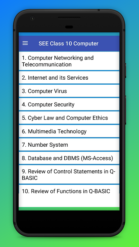 SEE Computer Class 10 Notes에는 네팔 10 학년 학생을위한 완전한 도서 참조가 포함되어 있습니다. 지금 휴대폰에서 SEE 컴퓨터 시험을 준비하십시오.