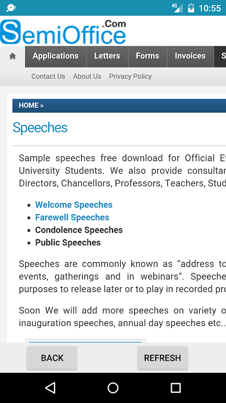 SemiOffice.Com는 모바일 사용자가 사용할 수 5000 개 이상의 비즈니스 편지와 문서 포맷을 제공하고있다. 공식 문자, 응용 프로그램, 양식, 인증서, 분쇄기 및 이력서 무료 샘플을 제공 Semioffice