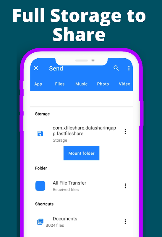 Send: All File Transfer & Share App is the Quick & Easiest way to Share Music, Share Videos, Share Photos, Share Mobile Apps, or any File Share in a Minute without the Internet.