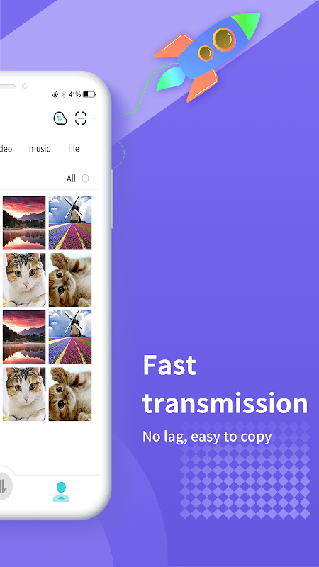 간단한 인터페이스: 대용량 파일 전송로 다른 휴대 전화가 명확하게 표시되고 디자인이 간소화되고 경험이 원활합니다.