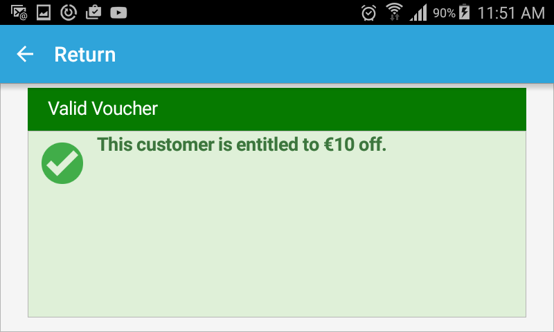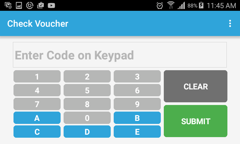 Sendmode tablet application utilizes the Wi-Fi to validate unique coded SMS vouchers in real-time.