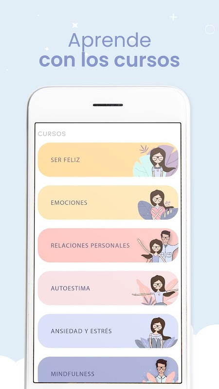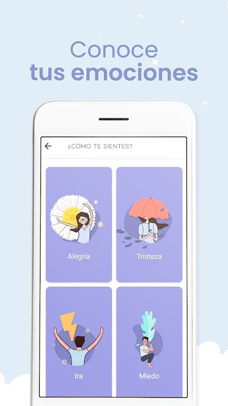 Es una herramienta perfecta para trabajar día a día en tu bienestar e inteligencia emocional y para ello, encontrarás dentro de la aplicación: