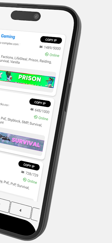 앱은 현재 온라인 상태이고 활성화된 서버만 표시합니다. 생존 기술을 시험하거나, 창의적인 롤플레이 커뮤니티에 참여하거나, PvP 전투에 참여하든, 항상 자신의 플레이 스타일에 맞는 서버를 찾을 수 있습니다.