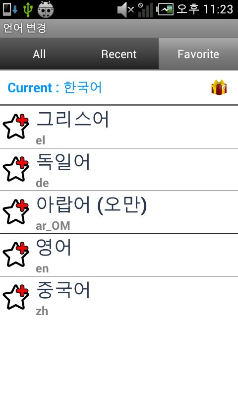 ☆ 안드로이드 설정에서 지원하지 않는 언어도 변경 할 수 있습니다.
