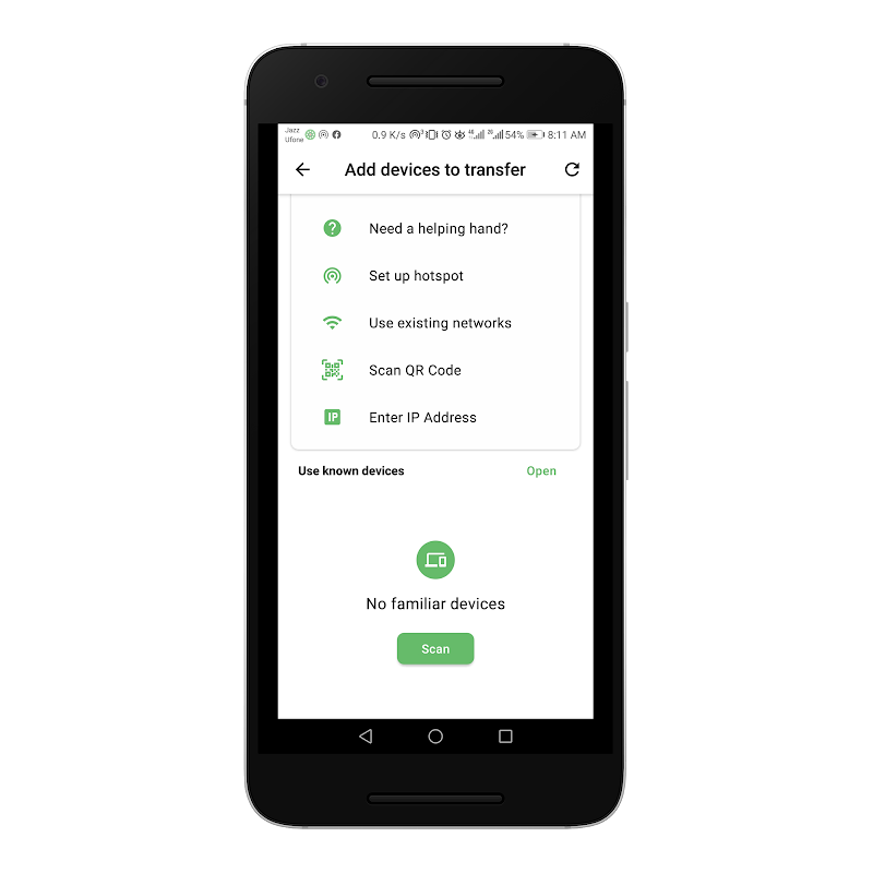 will recognize each other. You can also scan the code over your phone's screen or start a deep scan over the network.
