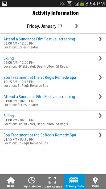 • View a film guide which includes times, locations and descriptions