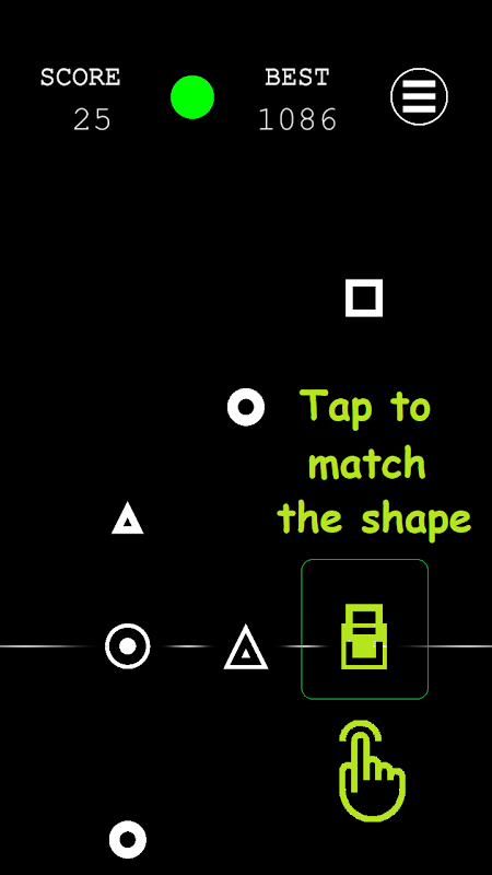 모양이 땅에 떨어지기 전에 맞춰 탭하세요. 원, 삼각형, 사각형이 떨어지면 맞춰야 합니다. 빠른 반응은 점수를 얻고, 실수는 생명을 앗아갑니다.