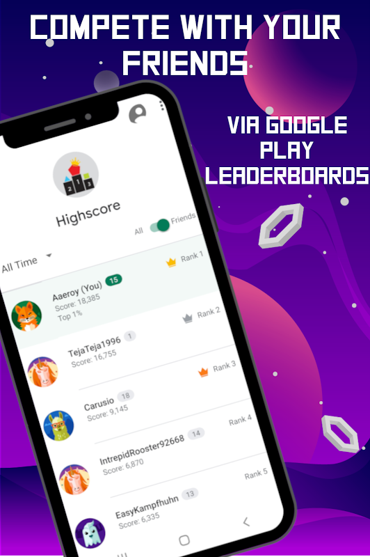 -무료 아케이드 게임 : 친구와 무료로 게임하고 경쟁하십시오. Google Play 리더 보드를 통해 최고 점수를 달성하고 기술을 비교해보십시오. 그룹에서 가장 똑똑한 사람을보십시오.