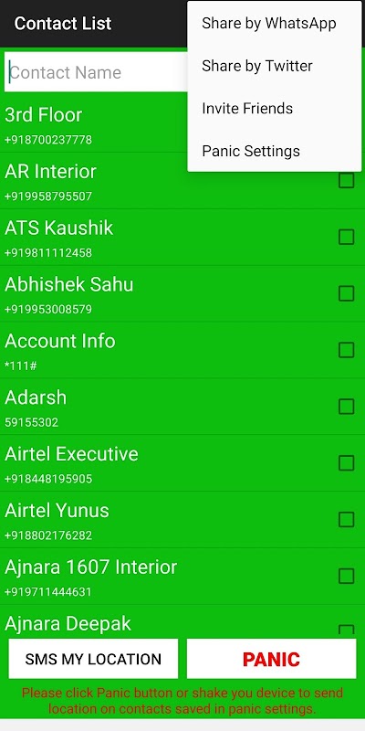 # 패닉 설정을 통해 긴급 전화번호를 저장한 다음 기기를 흔들어 위치를 공유하거나 "패닉" 버튼을 클릭하여 위치를 공유하거나 다른 메뉴 옵션을 확인하여 위치를 공유합니다.