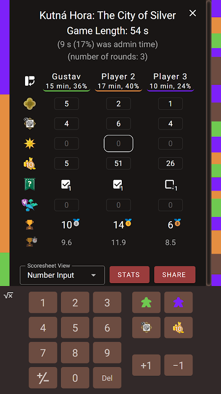 게임이 끝나면 점수 시트를 작성하도록 선택할 수 있습니다. 모든 플레이어가 채울 수있는 점수 범주를 빠르게 추가 할 수 있으며 타이머가 최종 점수를 합산합니다.