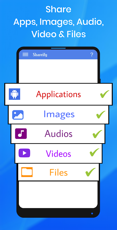 This Shareify application makes it easy to share photos, videos, apps, audios, and documents with your friends with secure connection.