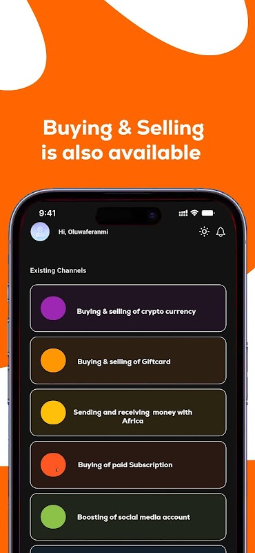 채팅 및 디지털 서비스 구매 및 판매: 암호화폐, 기프트 카드 등.