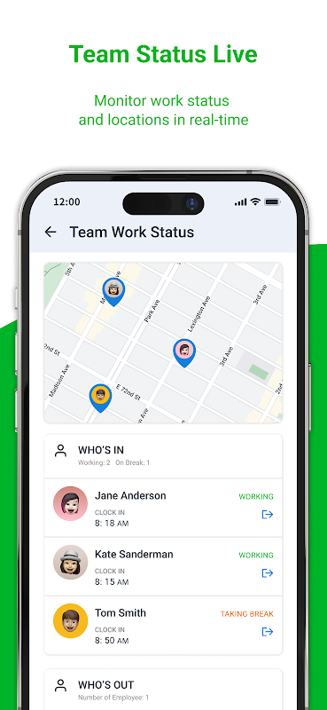 • 실시간 가시성 - 홈 화면에서 근무 중인 직원을 한눈에 확인하세요.