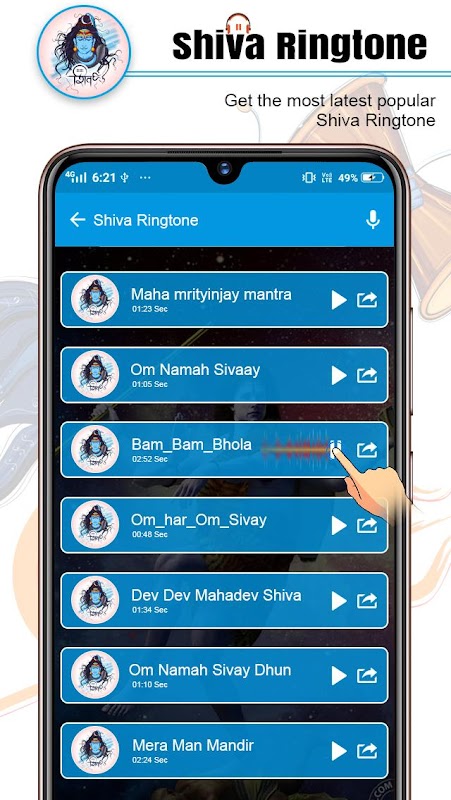 Using this Lord Shiv(Mahadev) Rigntones app you can set ringtones and wallpaper of Lord Shiv as your mobile ringtone..