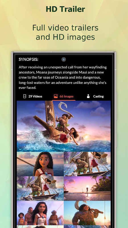 영화 목록, 출연진 및 예고편