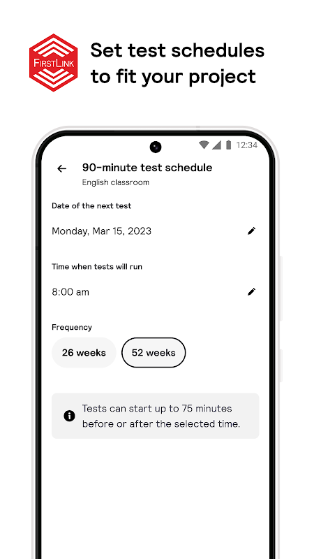 Signify FirstLink 앱은 FirstLink 커넥티드 비상구 조명 시스템에 접속할 수 있는 포털입니다. 사용하기 쉬운 이 스마트폰 애플리케이션을 통해 비상 조명 장치 설정, 테스트 결과 확인 및 내보내기, 테스트 일정 설정 등의 작업을 수행할 수 있습니다.