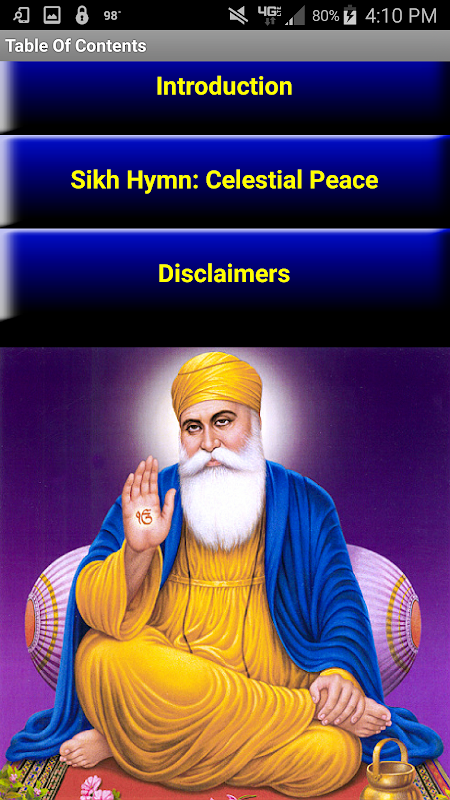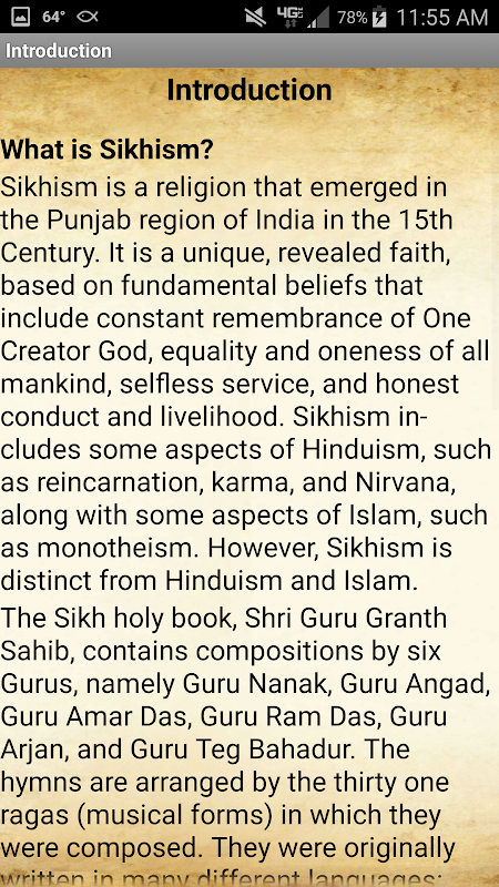 이 응용 프로그램은 스리 전문가 Granth 나리, 시크교의 거룩한 성경에서 시적 찬송가가 포함되어 있습니다. 이러한 찬송가는 raag이나 된 raga, 클래식 인도 음악 시스템에 기록됩니다. 행위의 시크 코드 시크 전통 따른 kirtan (칭찬 노래) raag (또는 것이다 raga)에서 수행 될 것을 조언한다. 이와 같은 "Raag Soohee는"아침 시간 선호, 그리고 행복과 성취 영감을 말한다. 이 특별한 찬송가는 하나님의 은혜와 사랑에 의해 부여 된 천상의 평화와 행복을 맞는다.