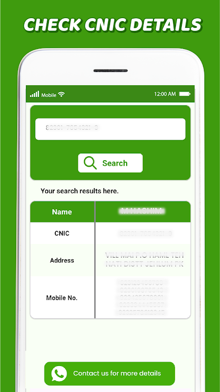 휴대폰 번호나 CNIC를 입력하면 SIM 세부정보를 확인할 수 있습니다.