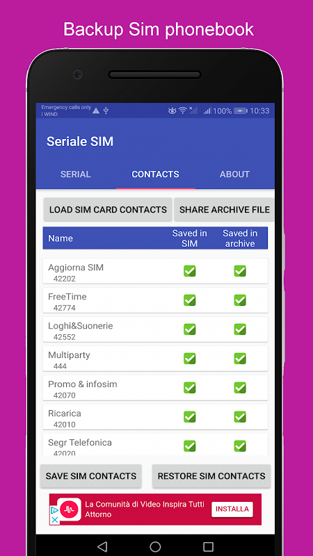 - SIM 카드 일련 번호를 읽고 당신에게 바코드 (매장 직원들에게 매우 유용합니다)를 제공하고 당신에게 복사 또는 SIM 일련 번호를 공유 할 수있는 가능성을 제공 빠른 속도와 스마트 응용 프로그램.