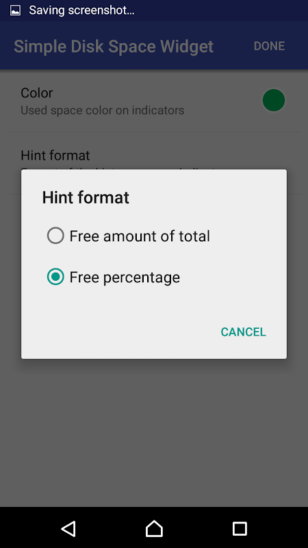 이 위젯은 기본적으로 당신이 사용하는 공간에 대한 자세한 정보 장치와 텍스트 힌트의 사용 가능한 스토리지에 사용 된 공간의 간단한 그래픽 표현을 보여줍니다. 단순히 위젯 메뉴를 사용하여 홈 화면에 추가 사용합니다. 이 위젯은 실행 프로그램에서 실행할 수있는 그것과 관련된 화면이없는 있음을 알아 두셔야합니다.