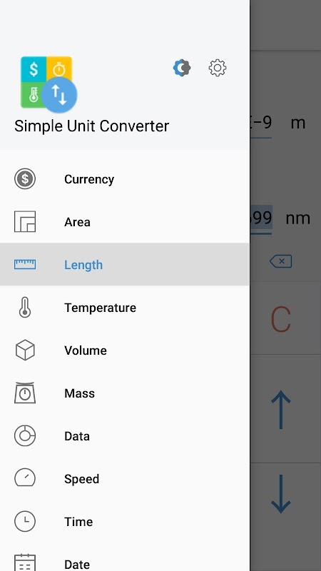 단위를 변환하려면 단위 계산기 버튼을 누릅니다. 다음과 같은 다양한 유형을 쉽게 변환 할 수 있습니다.