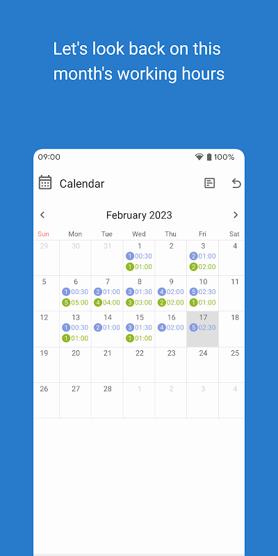 완료된 작업 시간은 달력에 기록됩니다.
