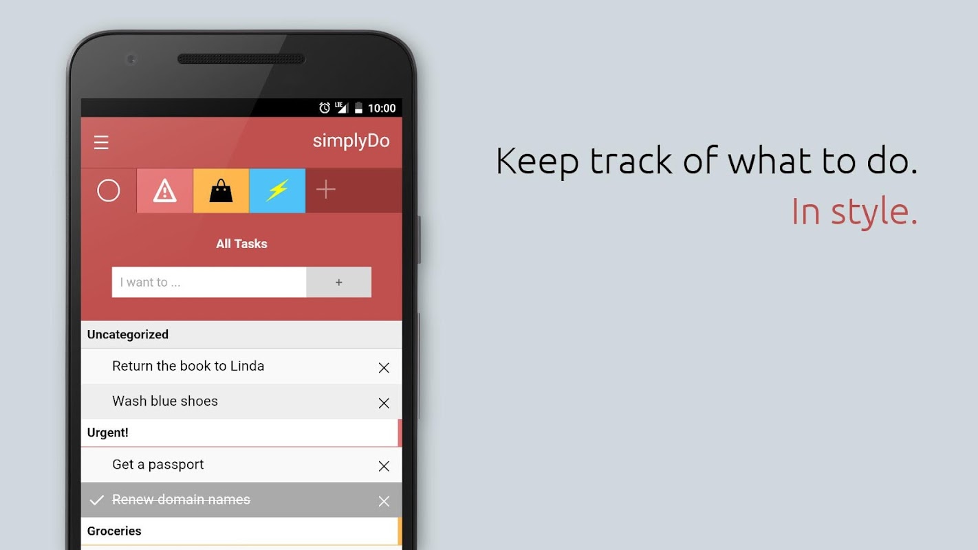 simplyDo is a free, open-source customizable to-do list app with category support.