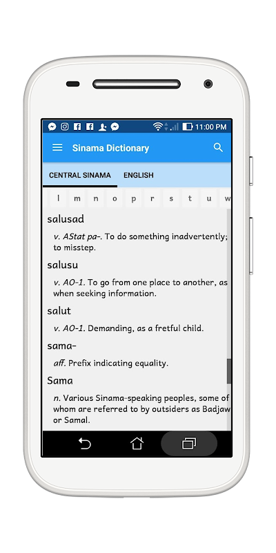 Central Sinama는 필리핀과 말레이시아의 언어입니다 (말레이시아에서 Bajau로 알려짐). 그것은 9 개의 별도이지만 관련된 Sama-Badjaw 언어 중 하나입니다. 언어 수는 수십만에 달합니다. 이 언어에 속하는 사투리는 다음과 같습니다 : Sama Dilaut (Zambasulta 및 diaspora 커뮤니티의 모든 지역), Sama Siasi (Buliꞌ Kullul, Kūd-Kūd, Laminusa, Manubal, Musuꞌ, Punungan, Sibaud, Siganggang, Silompak, Sisangat 타니 타위의 빈 나이 란, 빈타 웰란, 타바 완, 술루의 카빈가 원 그리고 잠보 앙아 반도의 사마 거주자들도 포함됩니다. South Ubian 사투리는 Central Sinama의 많은 기능을 공유하며 다른 Sama-Badjaw 언어 사용자는이 사전의 내용에 친숙한 단어, 뿌리 및 예문을 찾을 수 있습니다.