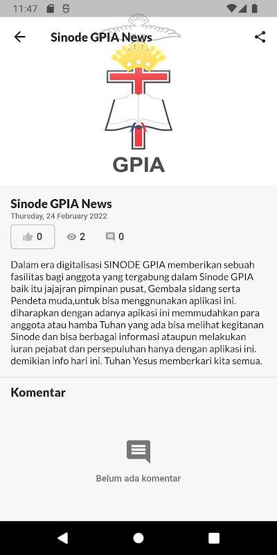 Sinode GPIA memberikan sebuah fasilitas berupa aplikasi yang memudahkan para pejabat gerja untuk bisa melakukan aktifitas sebagai anggota sinode GPIA contohnya :