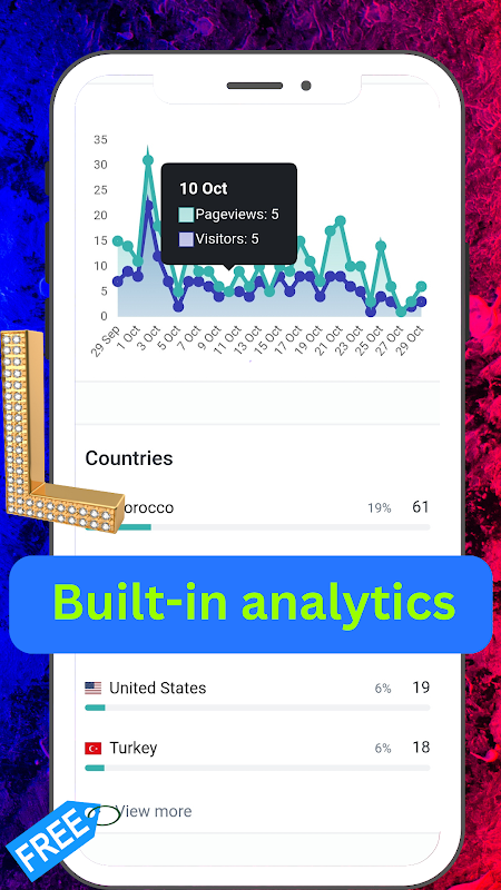 • 일일 조회수를 추적하고 국가별, 기기별로 분류합니다.