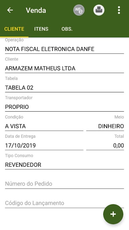 주문, 청구서 양식 또는 DANFE 전자 청구서를 발행하는 SIVA+ 사전 판매 및 신속한 배송 솔루션.