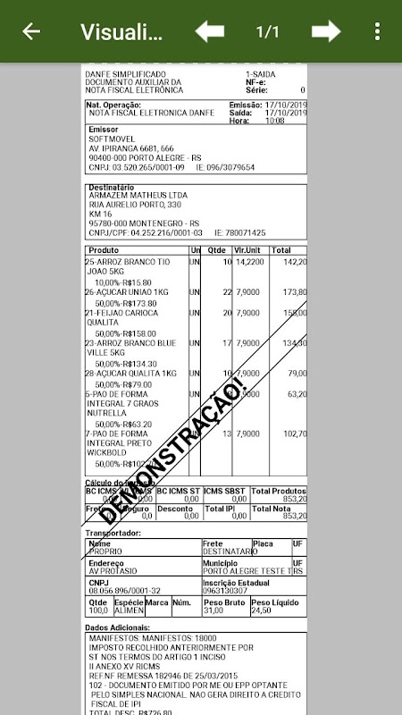 영수증, Danfes 및 청구서 인쇄.