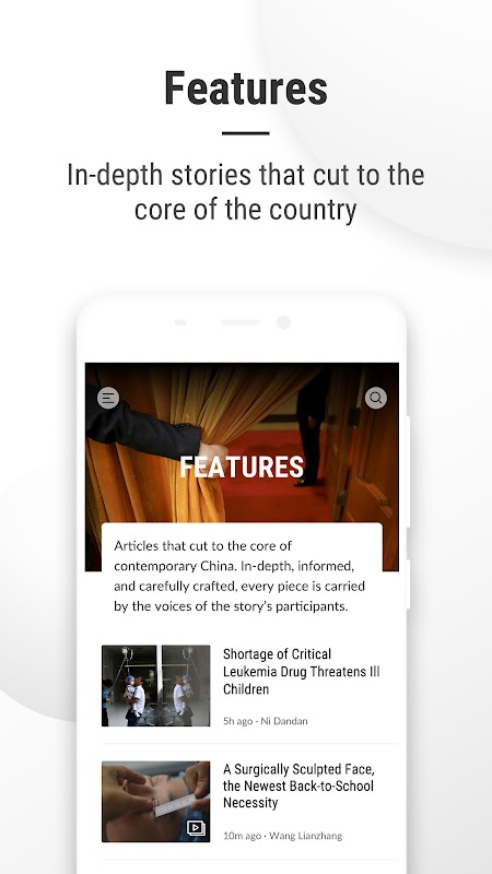 특징은 현대 중국의 핵심을 꿰뚫는 기사입니다. 깊이 있고 정보에 입각하여 세심하게 제작된 모든 작품은 스토리 참여자의 목소리로 전달됩니다.
