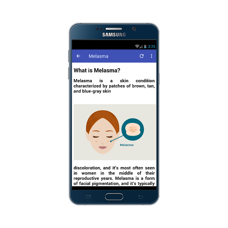 우리의 피부 앱은 사진과 함께 모든 피부 질환, 그 원인, 감염, 치료, 예방 및 증상을 나열합니다 :
