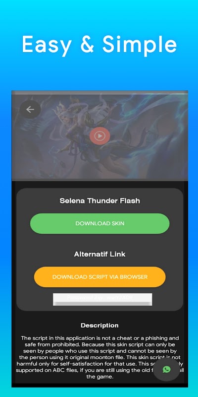 Meow IMLS : Adalah aplikasi yang dapat digunakan untuk mencoba skin yang tersedia, aplikasi ini bersifat virtual hanya bisa anda nikmati sendiri tanpa sedikitpun merugikan pihak lain nya.