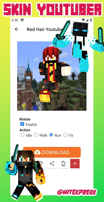 360도 회전, HD 이미지 및 3D 보기가 있는 마인크래프트용 HD Youtuber 스킨
