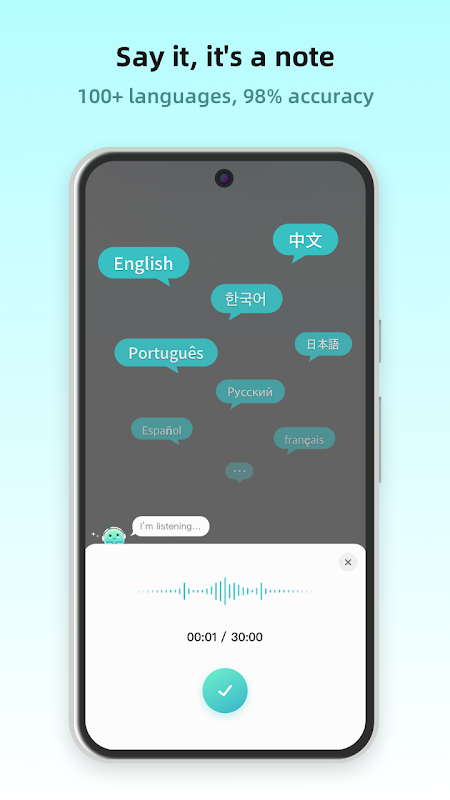 AI 기반 음성 메모. 몇 초 만에 음성을 텍스트로 변환할 수 있습니다.
