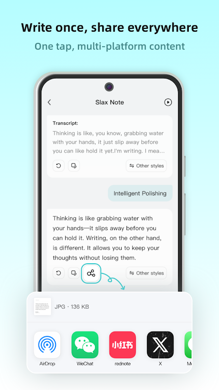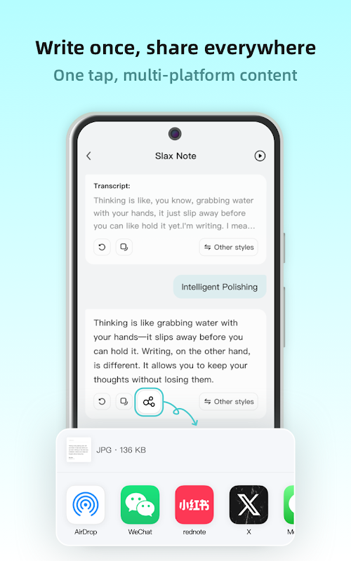 소중한 통찰력을 쉽게 공유하세요. 텍스트를 복사하거나 이미지로 공유하려는 경우 Slax Note를 사용하면 일상적인 작업 흐름에 원활하게 통합할 수 있습니다. 아이디어를 빠르고 효율적으로 표현해 보세요.